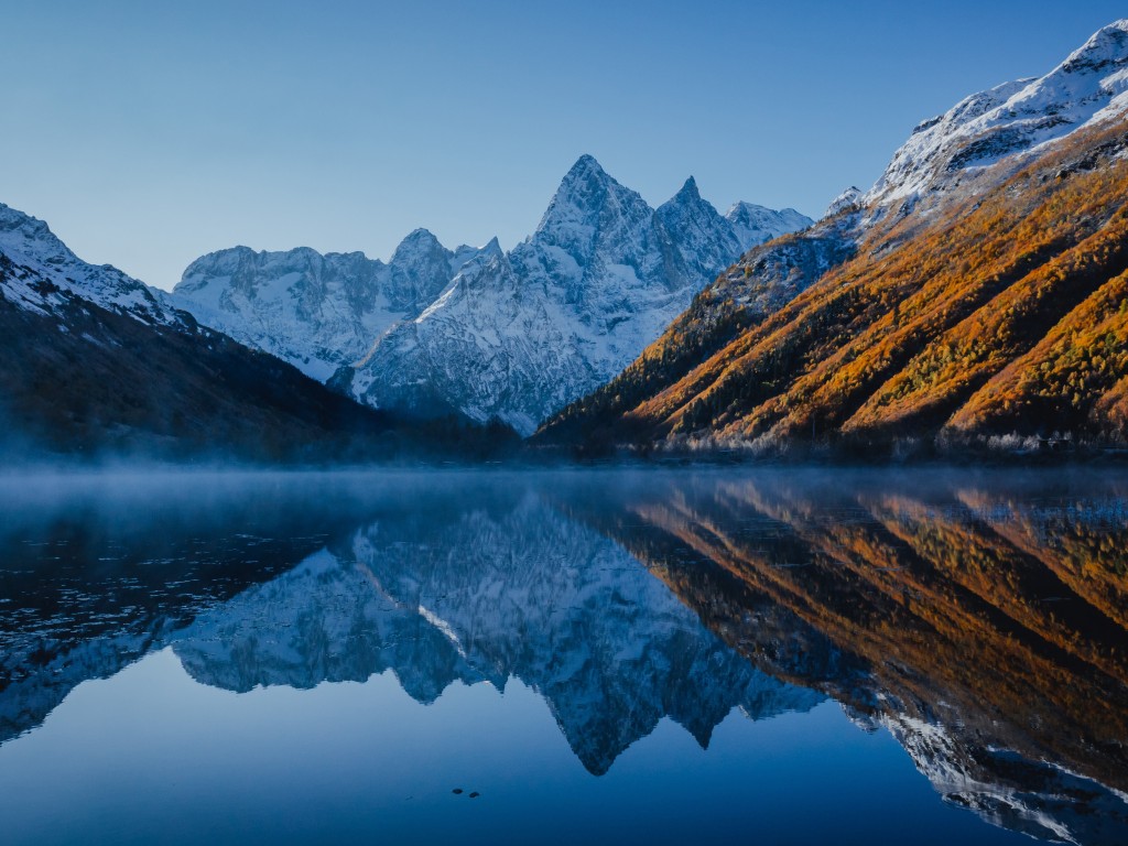 Mountains Snow Water Reflection Wallpaper - 1024x768