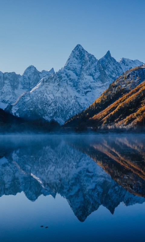 Mountains Snow Water Reflection Wallpaper - 480x800