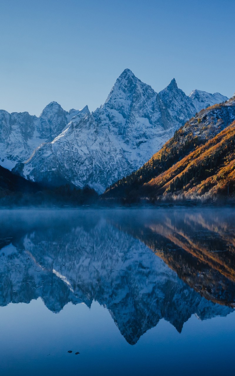 Mountains Snow Water Reflection Wallpaper - 800x1280