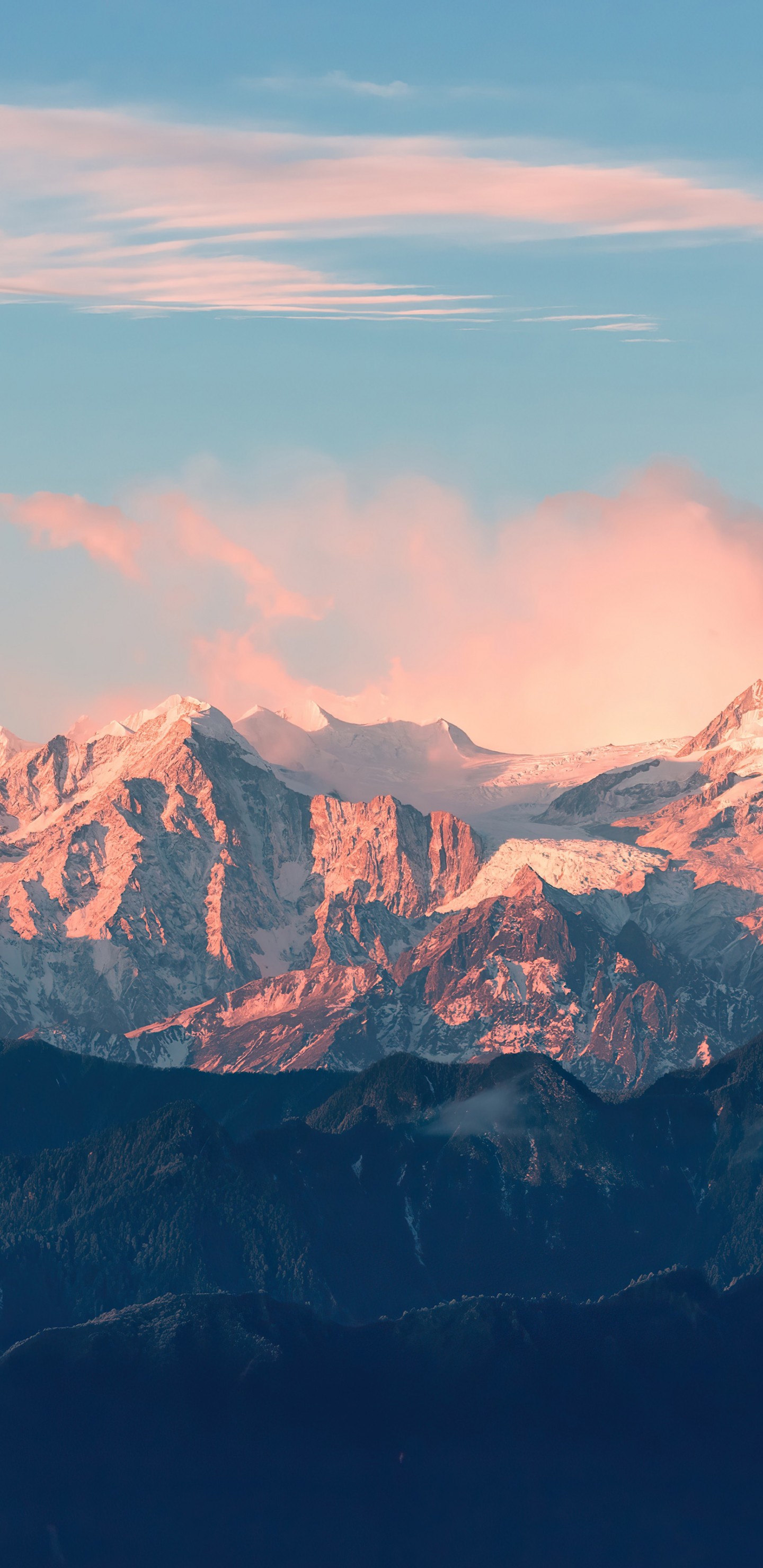 Muntain Range Landscape Snow Clouds Wallpaper - 1440x2960