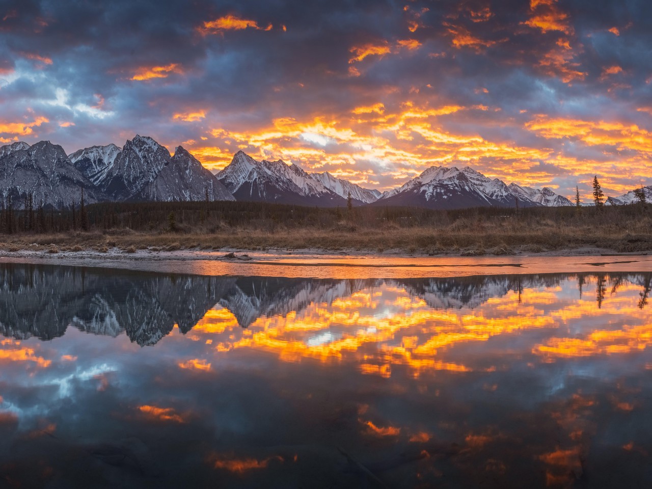 Sunrise Alberta Canada Lake Mountains Wallpaper - 1280x960