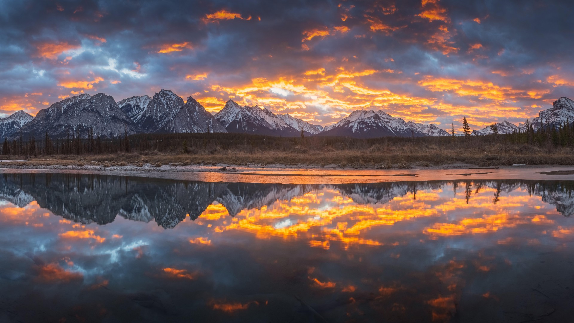 Sunrise Alberta Canada Lake Mountains Wallpaper - 1920x1080