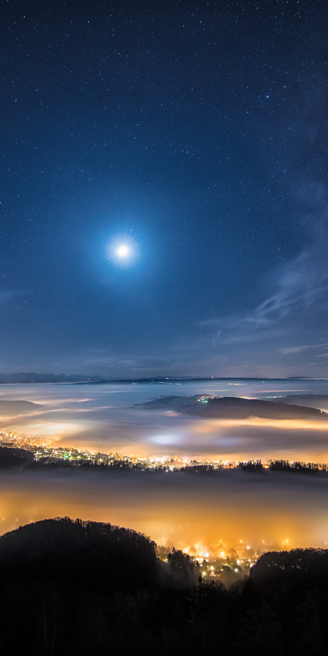 Swiss Mountain Plateau Fog Landscape Wallpaper - 1080x2160