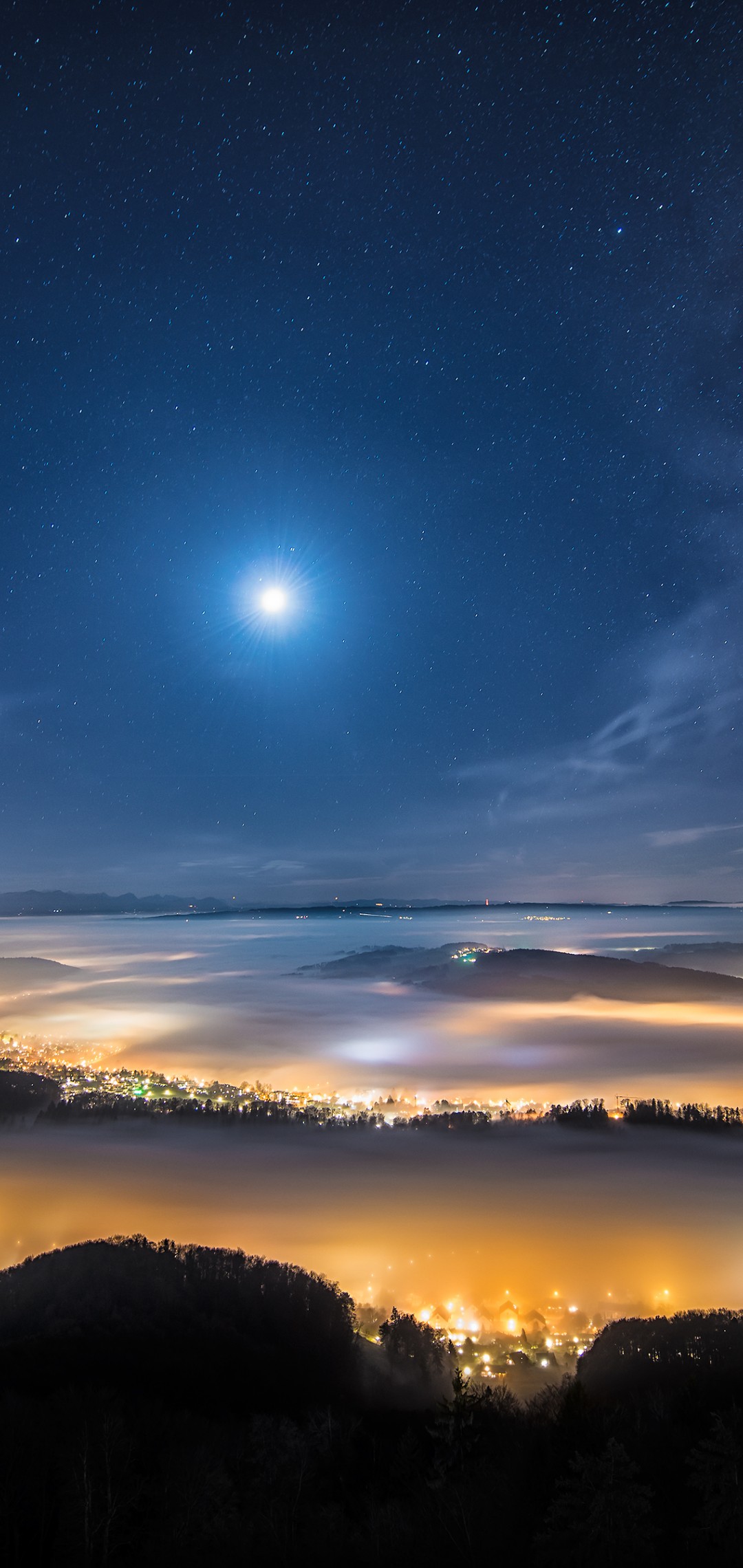 Swiss Mountain Plateau Fog Landscape Wallpaper - 1080x2280