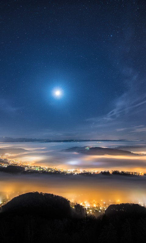 Swiss Mountain Plateau Fog Landscape Wallpaper - 480x800