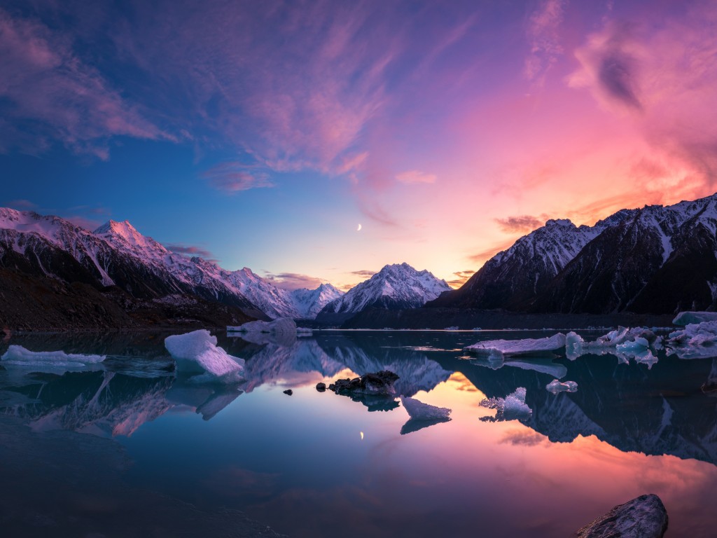 Tasman Lake New Zealand Mountains Wallpaper - 1024x768