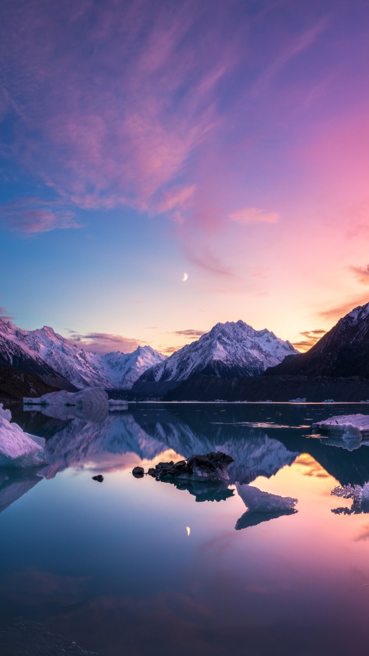 Tasman Lake New Zealand Mountains Wallpaper - 750x1334