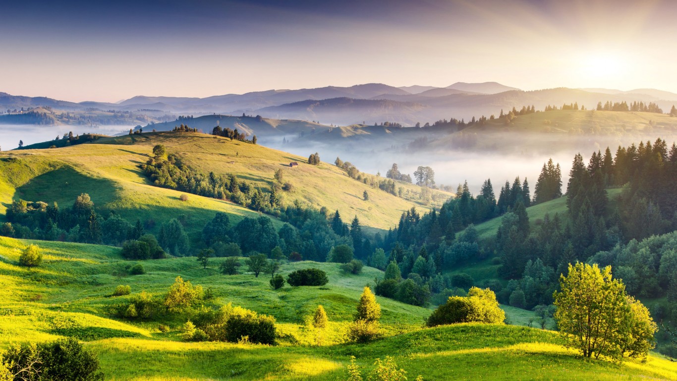 Nature Hills Sunrise Landscape Wallpaper - 1366x768