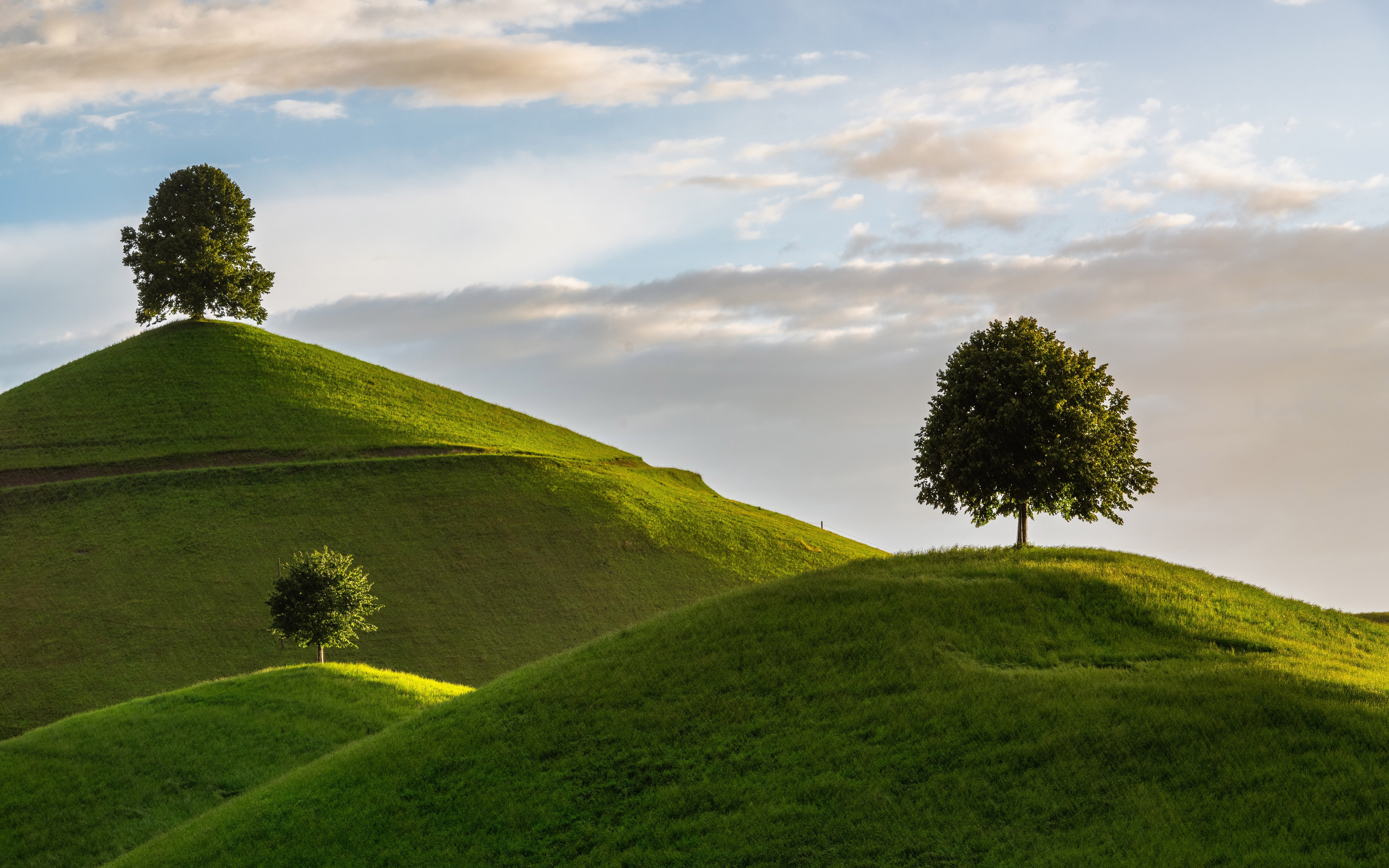 Nature Landscape Trees Hills Grass Wallpaper - 7680x4800