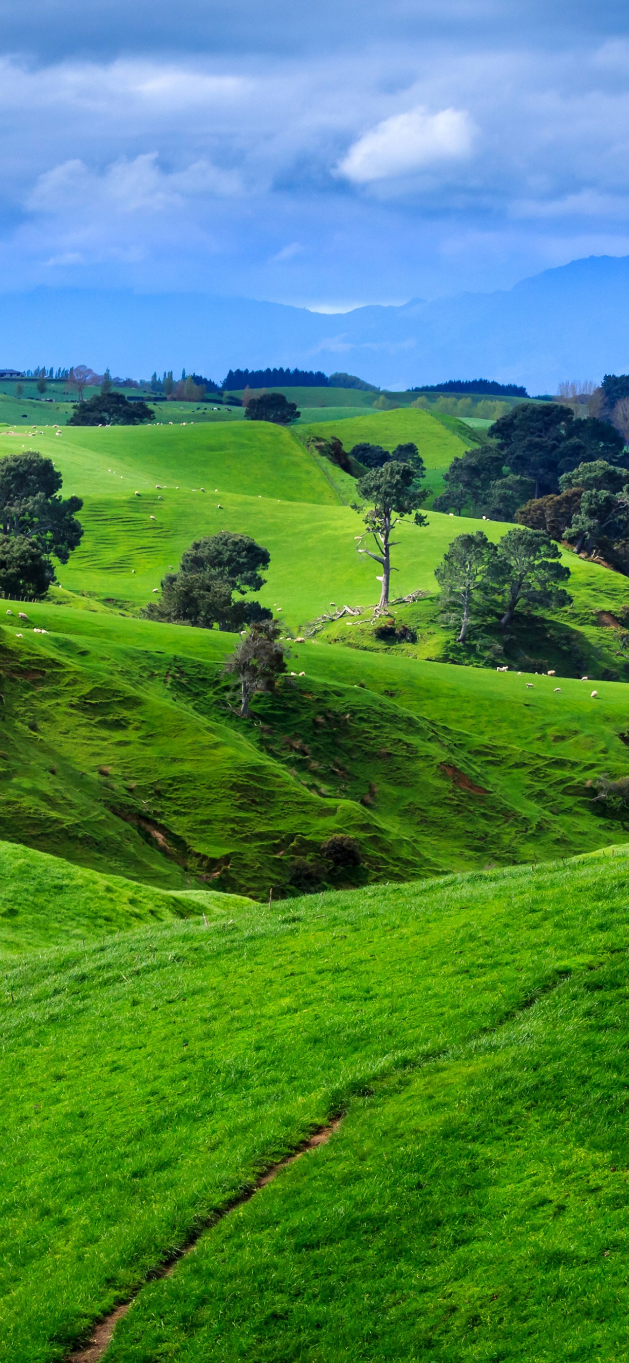 New Zealand Green Field Trees Wallpaper - 1242x2688