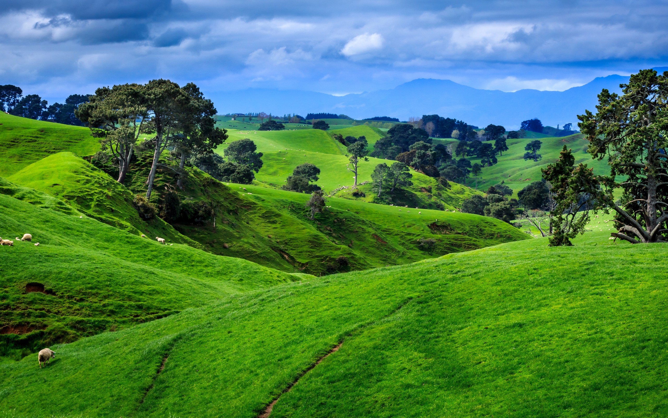 New Zealand Green Field Trees Wallpaper - 2560x1600