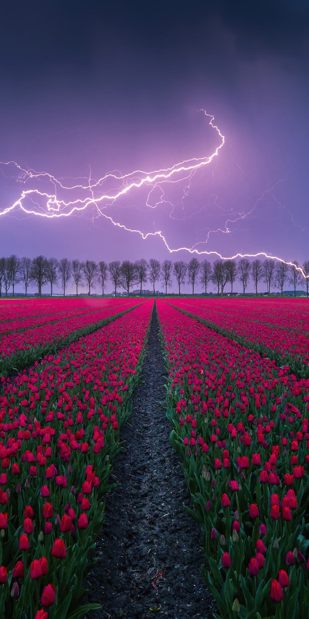 Tulips Field Lightning Strike Storm Wallpaper - 1080x2160