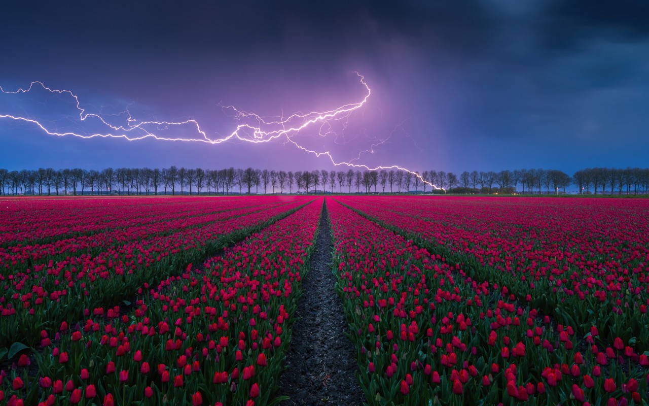 Tulips Field Lightning Strike Storm Wallpaper - 1280x800