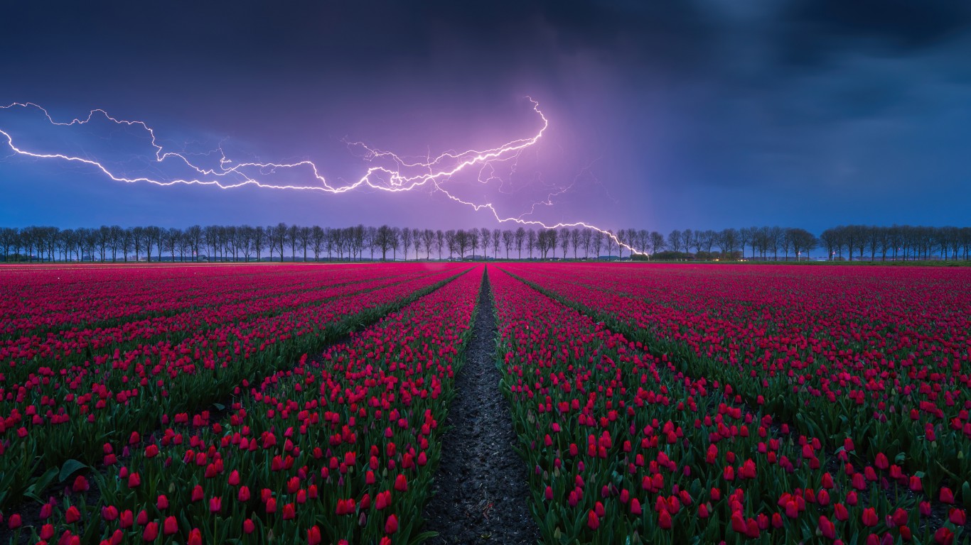 Tulips Field Lightning Strike Storm Wallpaper - 1366x768