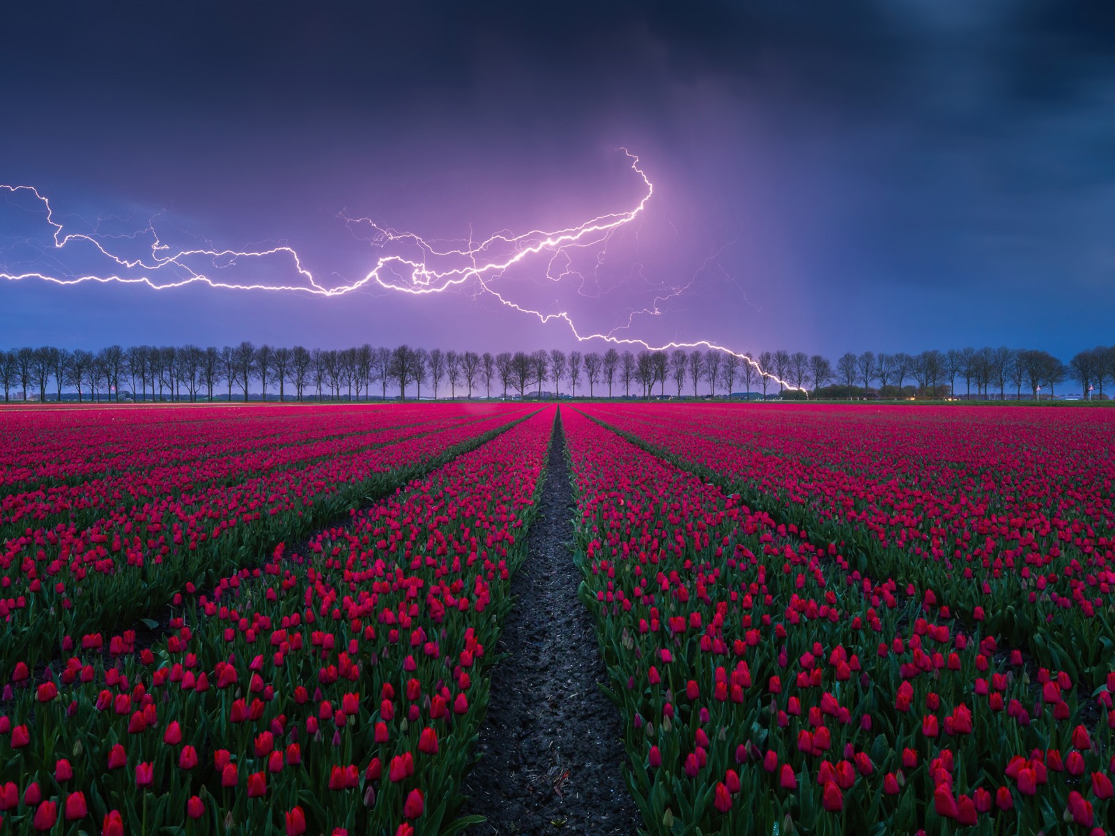 Tulips Field Lightning Strike Storm Wallpaper - 1600x1200