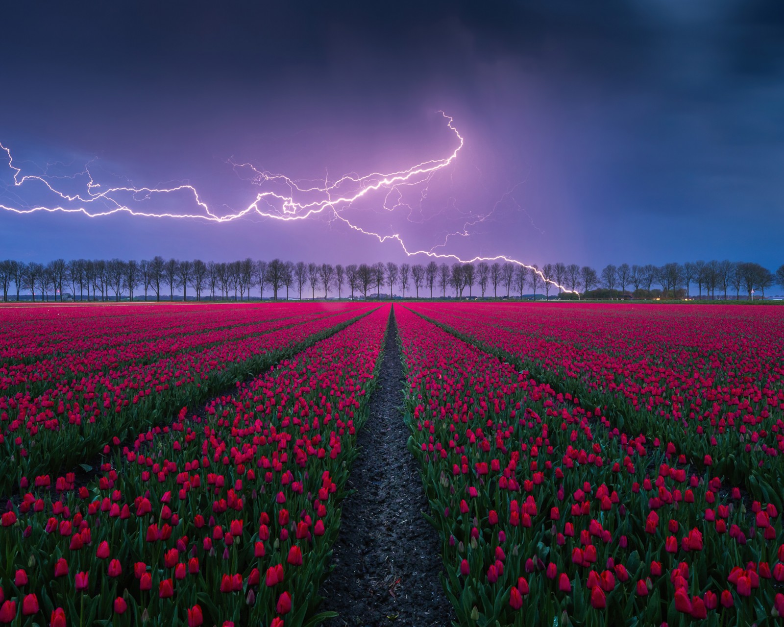 Tulips Field Lightning Strike Storm Wallpaper - 1600x1280