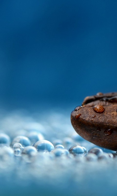 Coffee Bean Macro Water Drops Wallpaper - 480x800