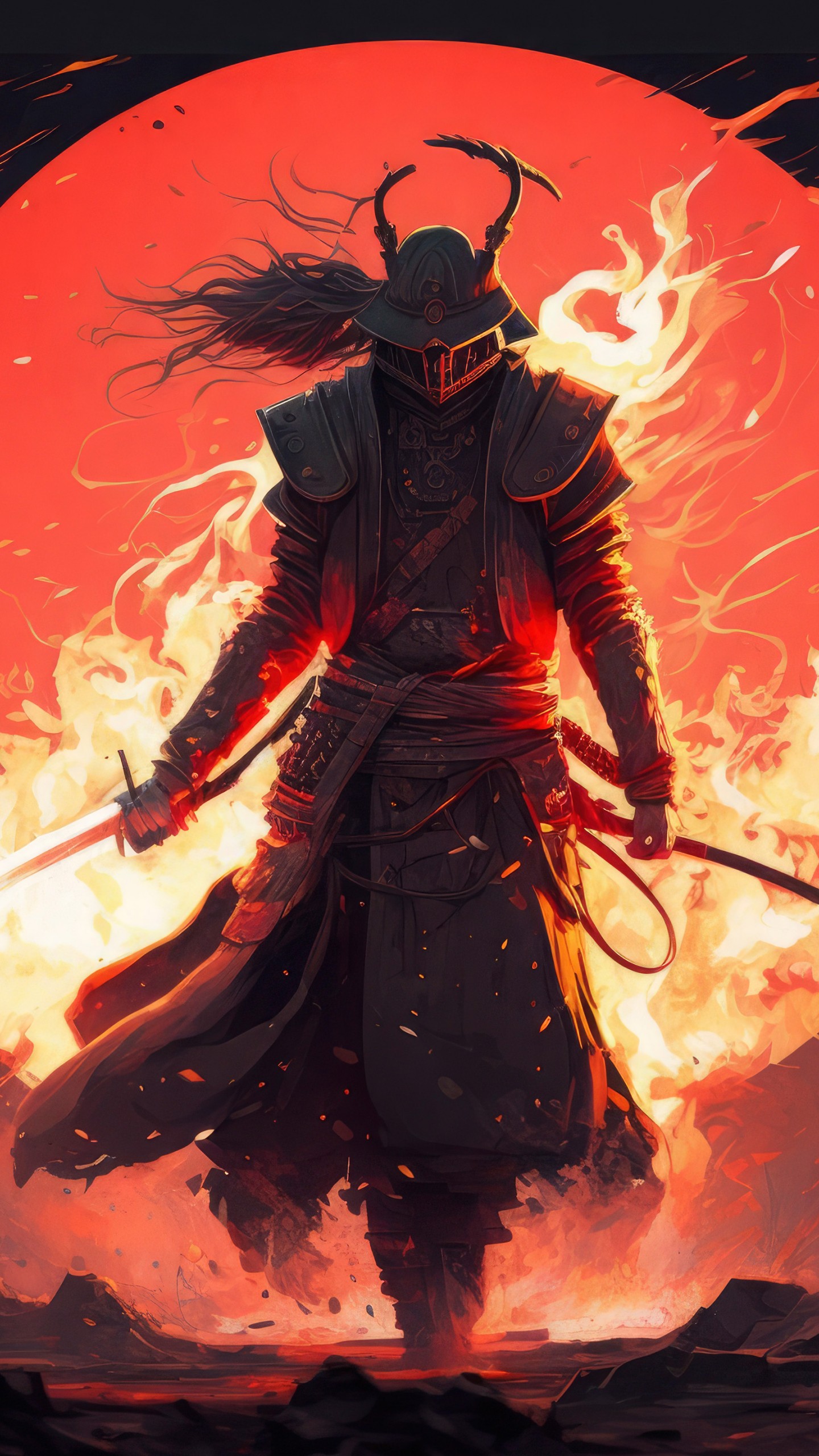 Samurai Warrior Katana Fire Sword Wallpaper - 1440x2560