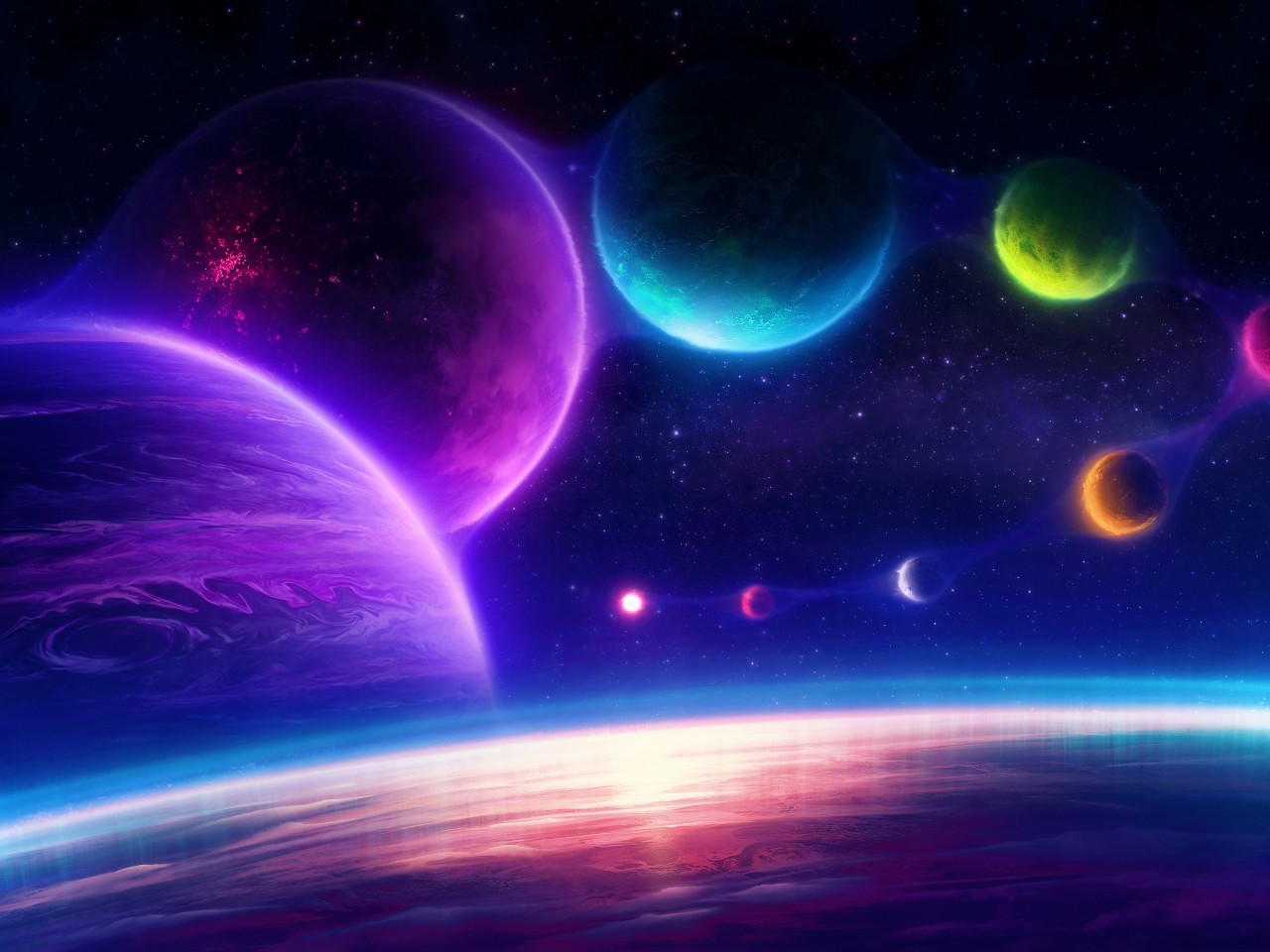 Pink Blue Planets Jelly Sky Wallpaper - 1280x960