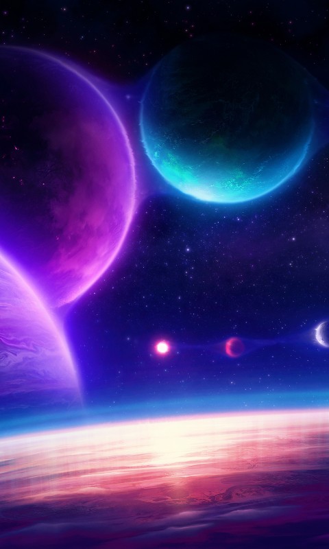 Pink Blue Planets Jelly Sky Wallpaper - 480x800