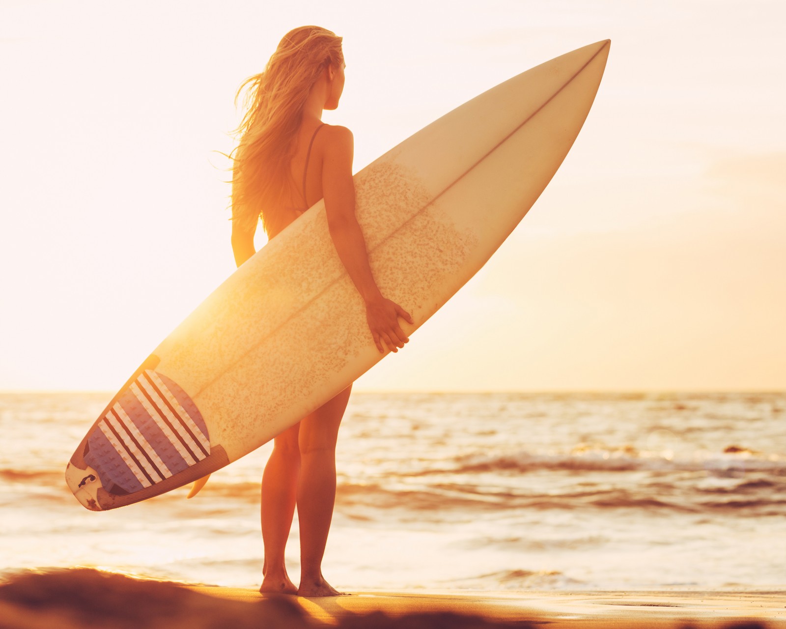 Girl Beach Sunset Surfboard Wallpaper - 1600x1280