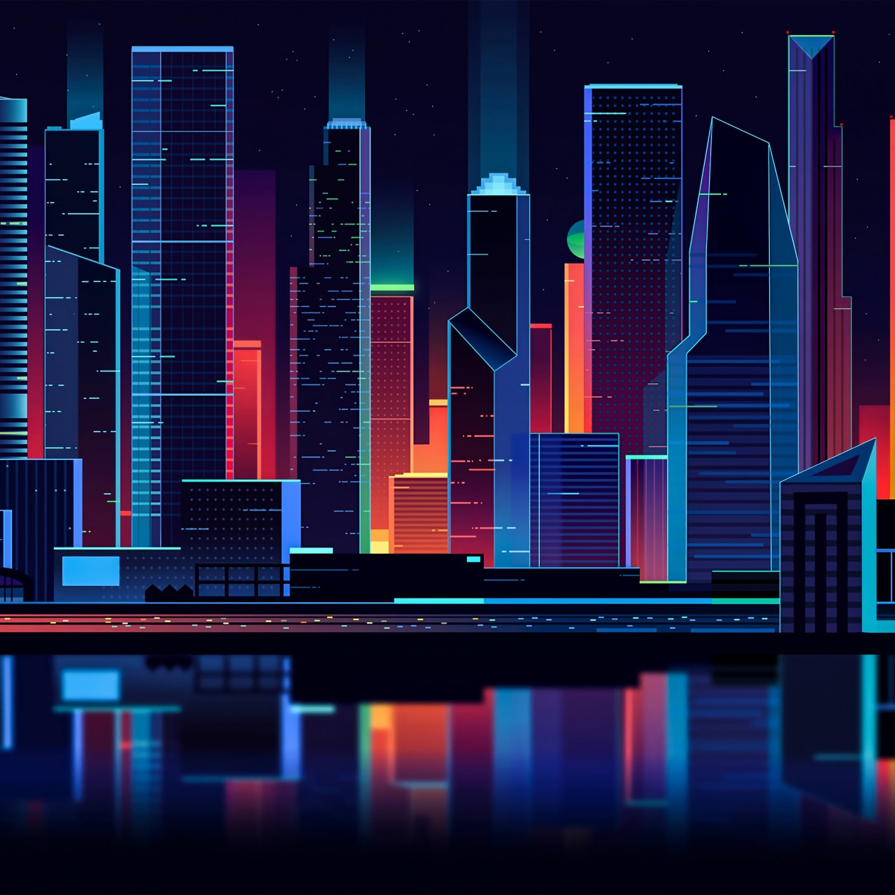 City Lights Skyscraper Vector Art Wallpaper - 1280x1280