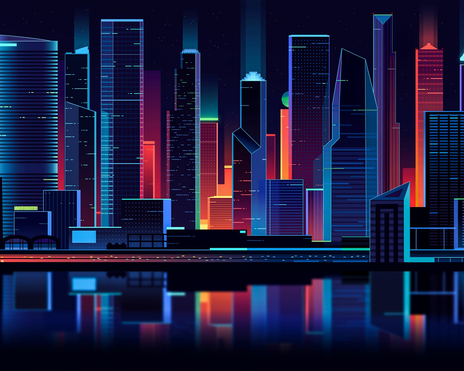 City Lights Skyscraper Vector Art Wallpaper - 1600x1280
