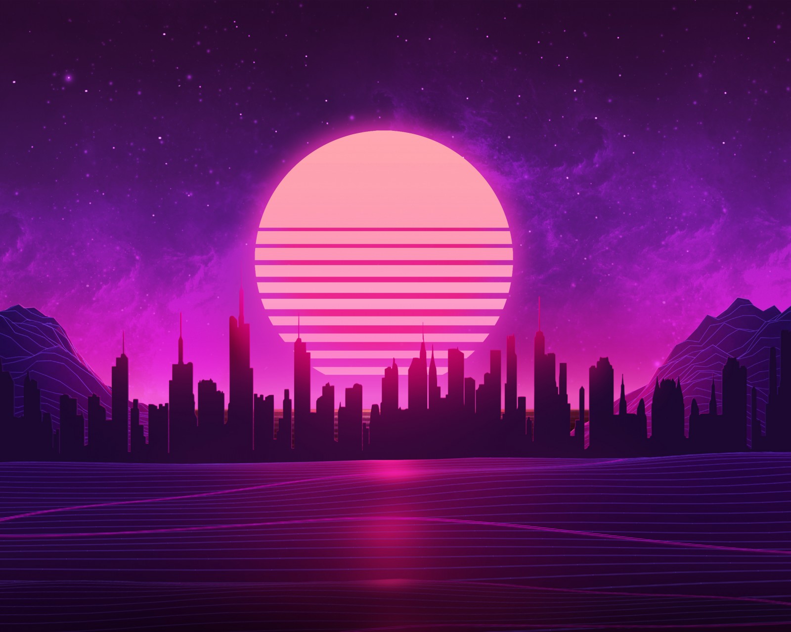 City Sunset Night Neon Skyline Wallpaper - 1600x1280