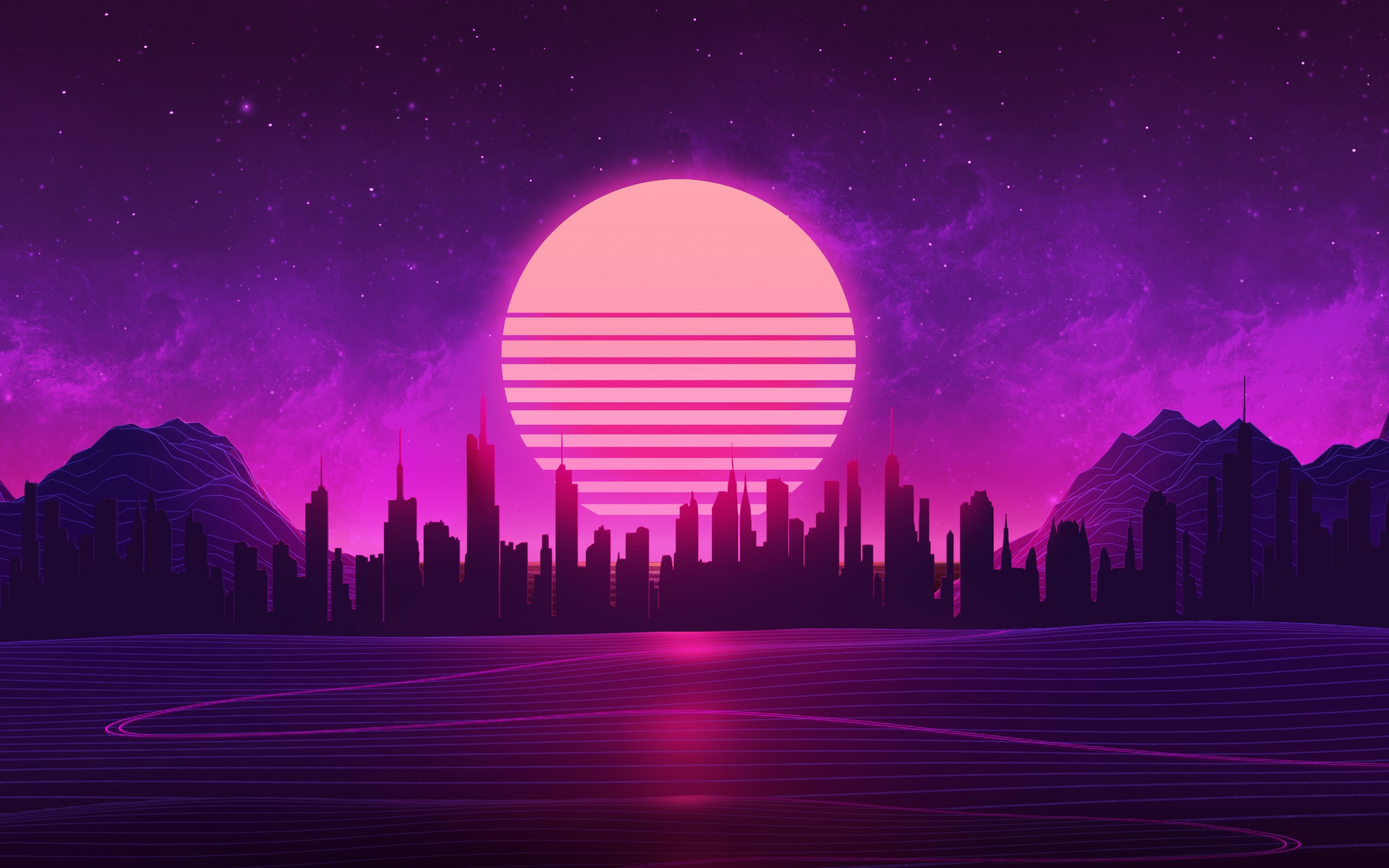 City Sunset Night Neon Skyline Wallpaper - 2560x1600
