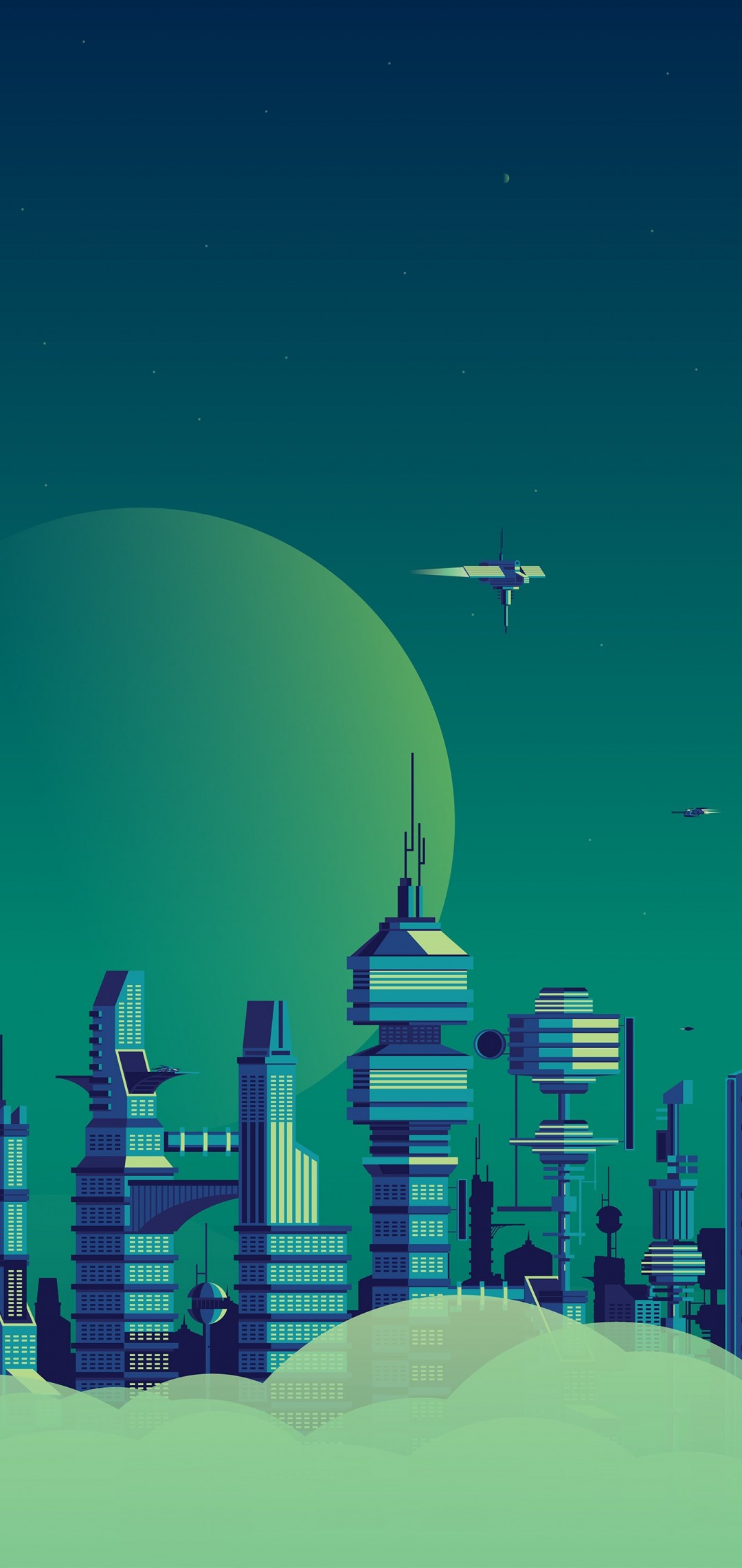 Sci Fi Planet Skyscraper Vector Art Wallpaper - 1080x2280
