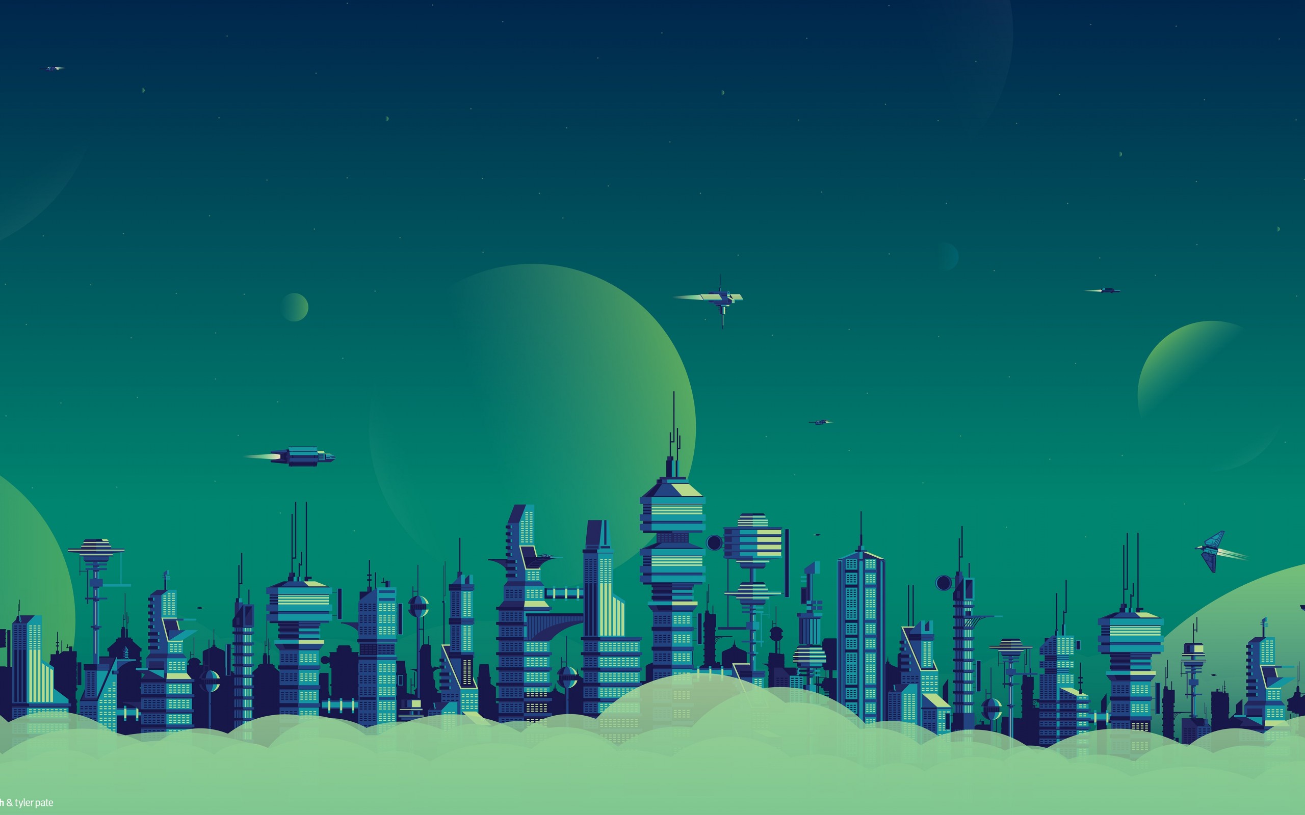 Sci Fi Planet Skyscraper Vector Art Wallpaper - 2560x1600