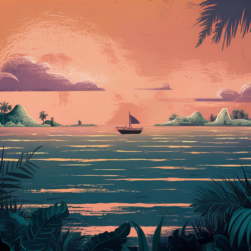 Tropical Paradise Island Sunset Wallpaper - 1024x1024