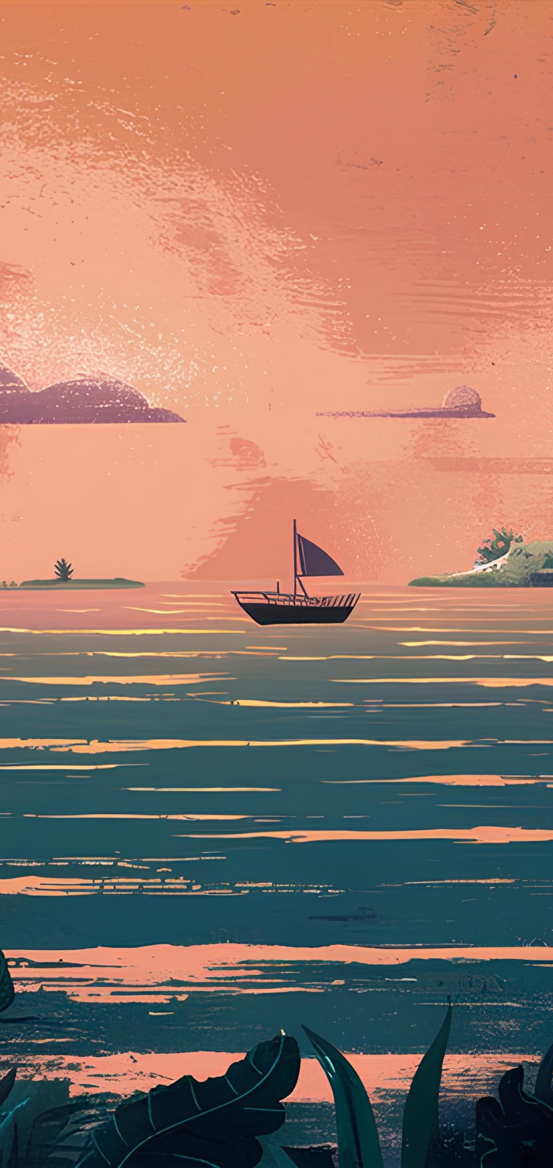 Tropical Paradise Island Sunset Wallpaper - 1080x2280