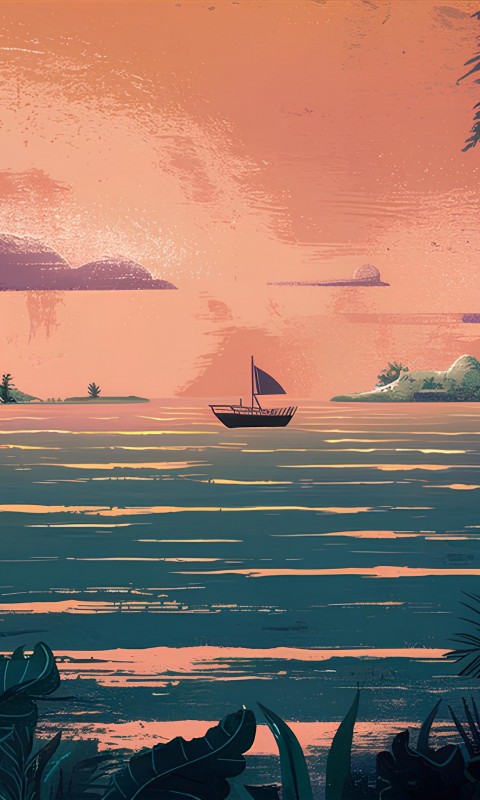 Tropical Paradise Island Sunset Wallpaper - 480x800