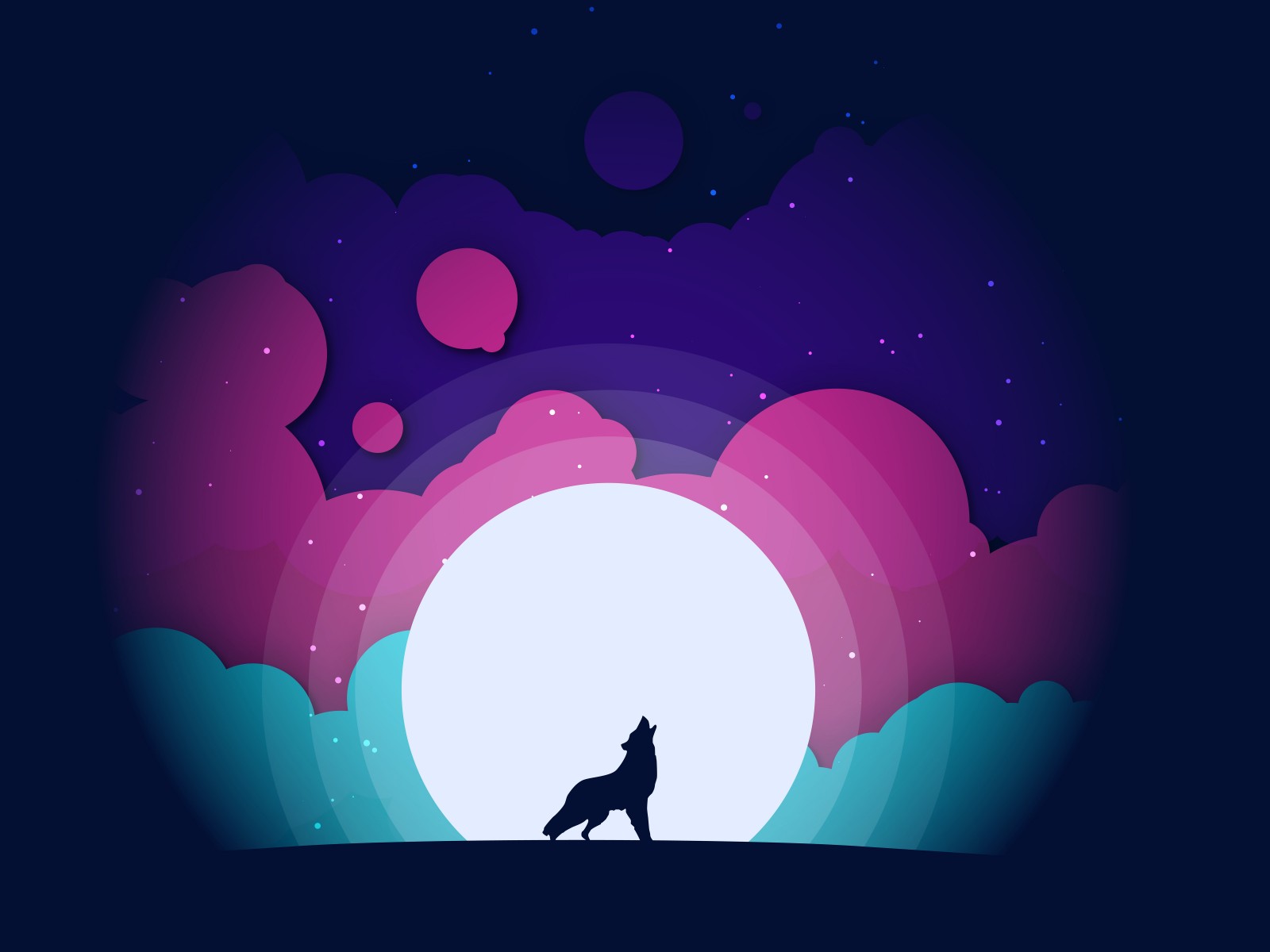 Vector Art Wolf Night Moon Wallpaper - 1600x1200
