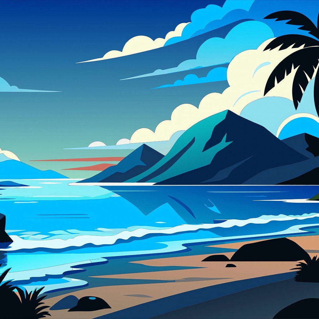 Vector Coast Sea Waves Mountains Wallpaper - 1024x1024