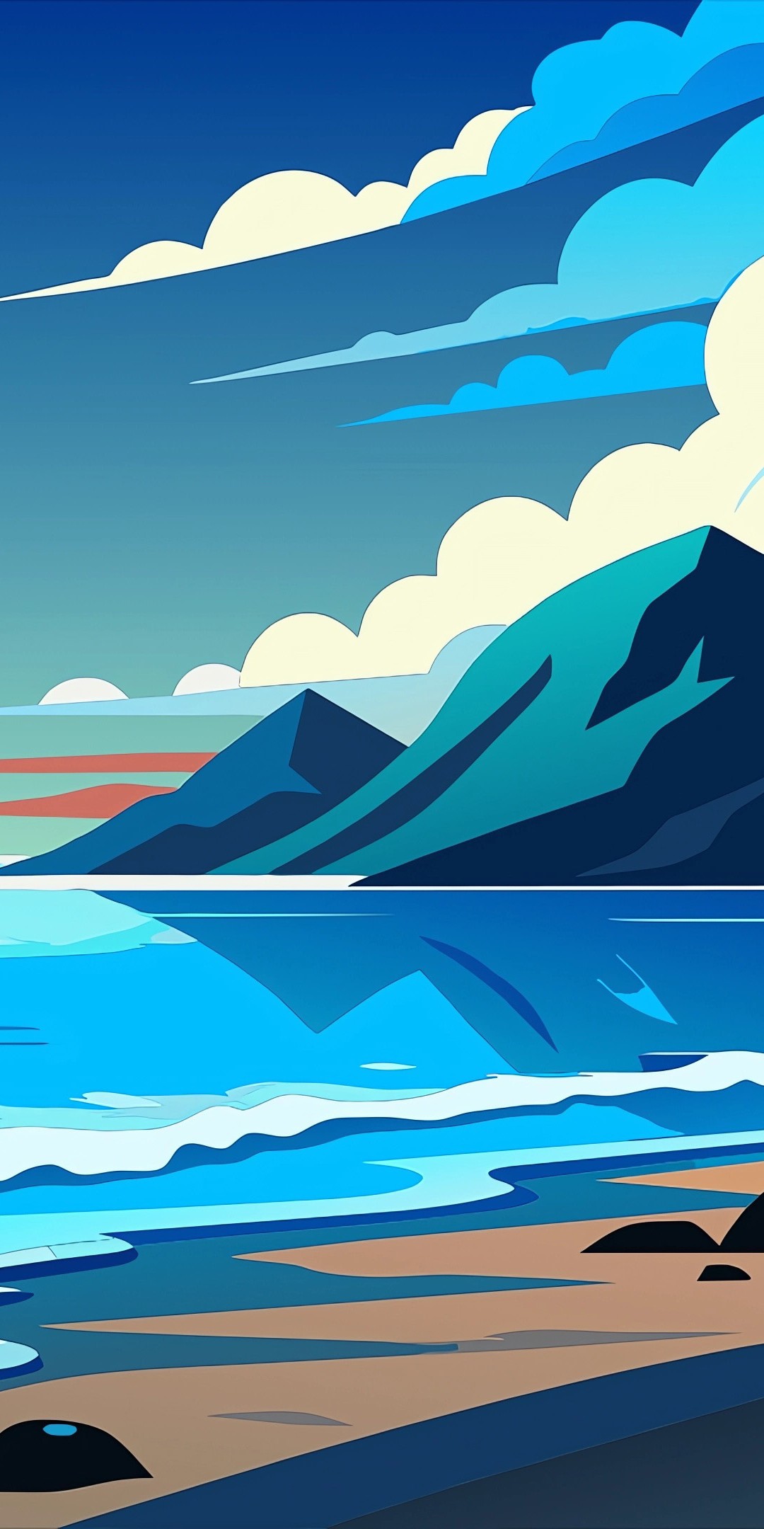 Vector Coast Sea Waves Mountains Wallpaper - 1080x2160