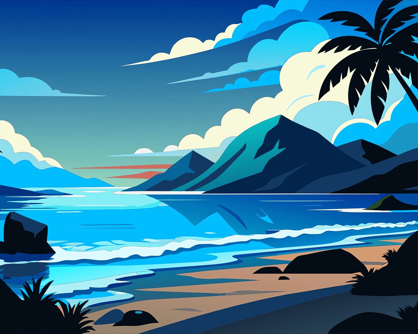 Vector Coast Sea Waves Mountains Wallpaper - 1600x1280