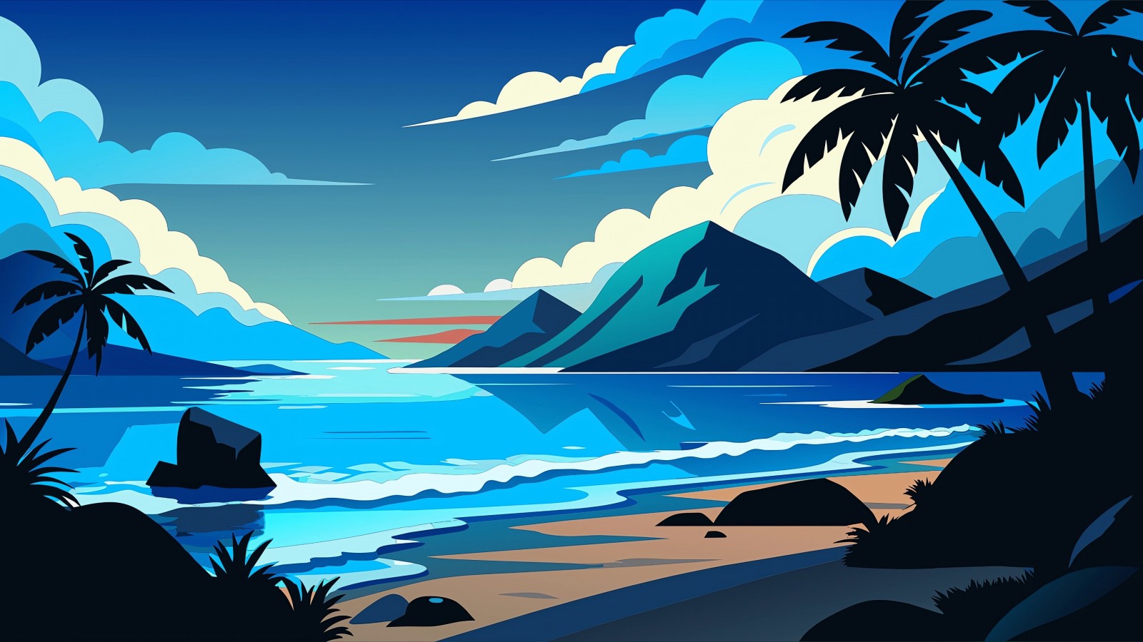 Vector Coast Sea Waves Mountains Wallpaper - 1600x900