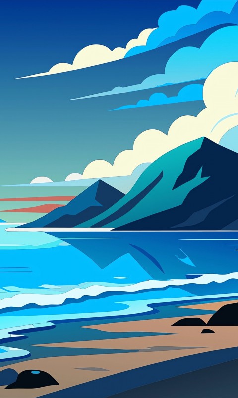 Vector Coast Sea Waves Mountains Wallpaper - 480x800