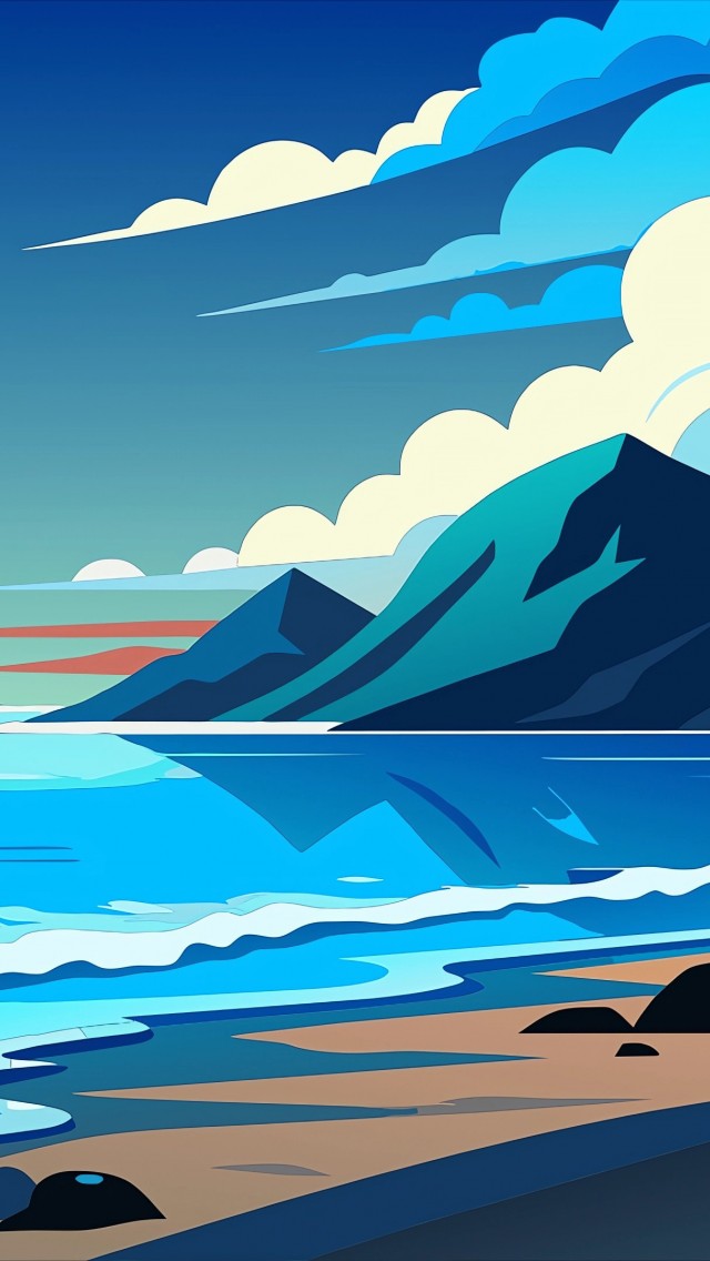 Vector Coast Sea Waves Mountains Wallpaper - 640x1136