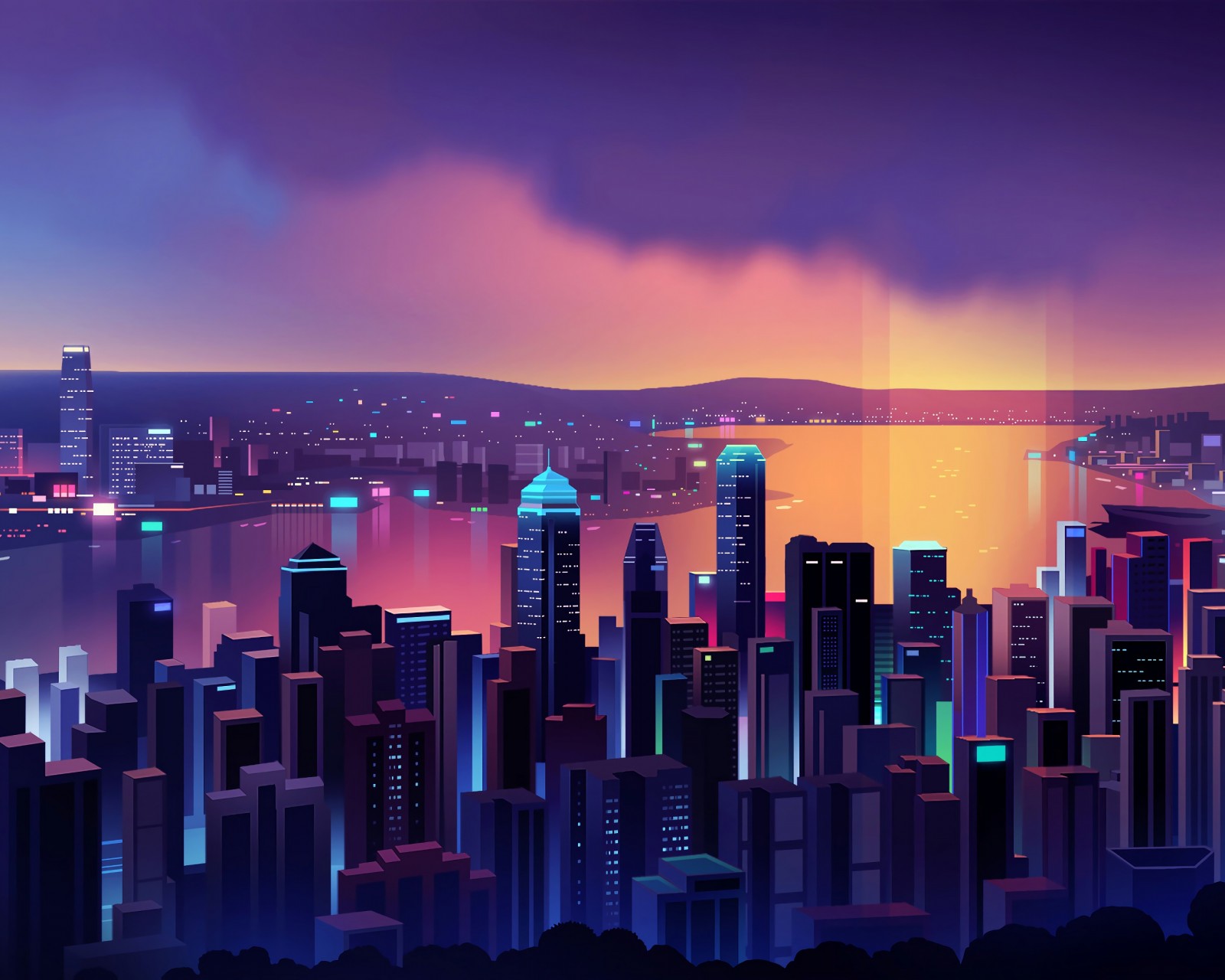 Vector Neon Hong Kong City Lights Wallpaper - 1600x1280