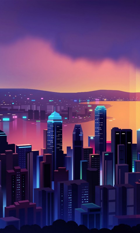 Vector Neon Hong Kong City Lights Wallpaper - 480x800