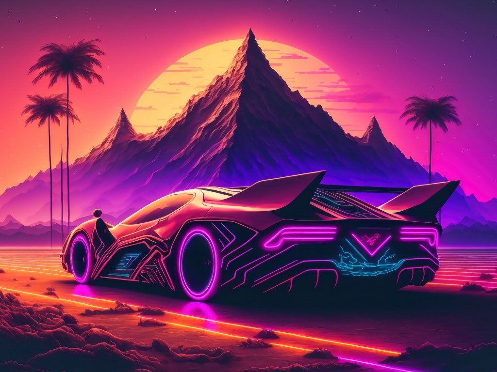 Ai Sports Car Sunset Scenery Wallpaper - 1024x768