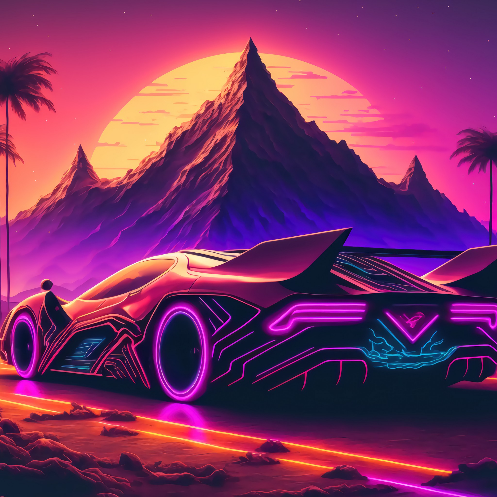 Ai Sports Car Sunset Scenery Wallpaper - 2048x2048