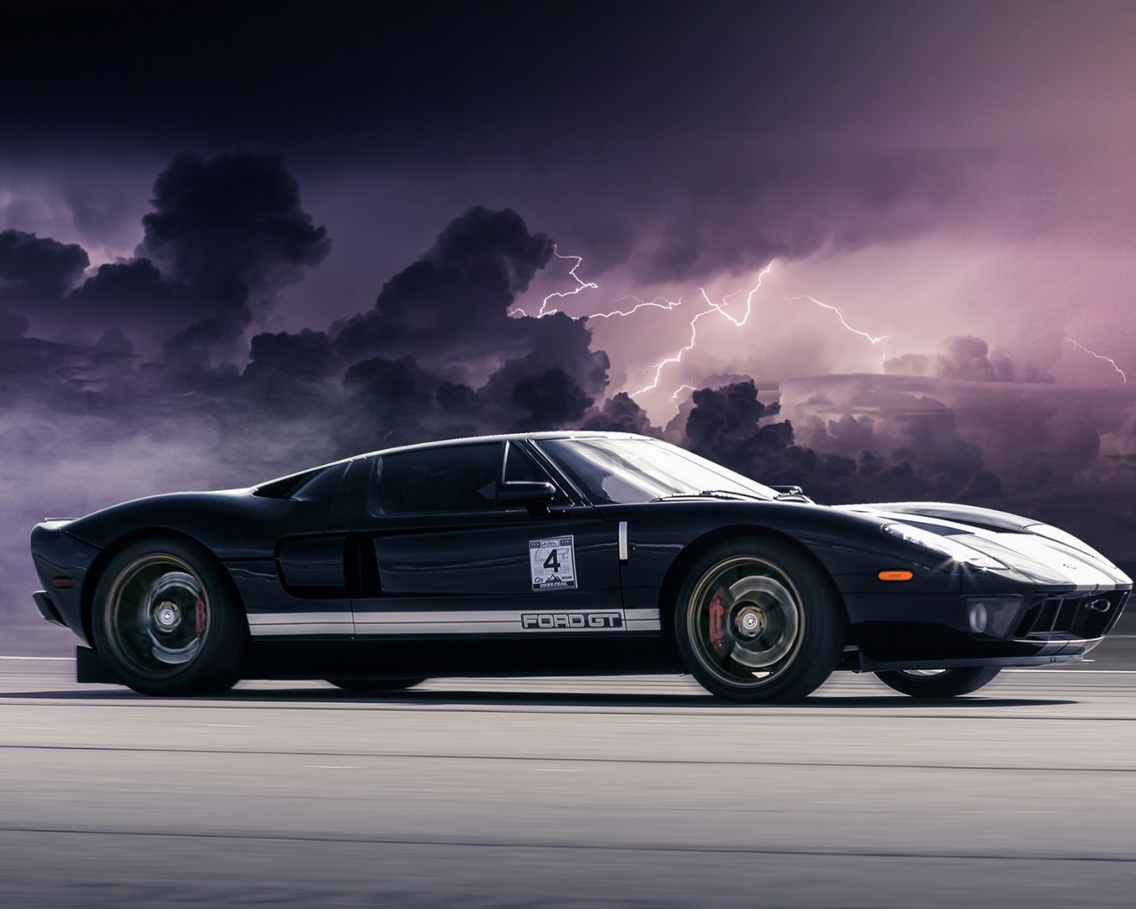 Ford GT Black Clouds Lightning Wallpaper - 1280x1024