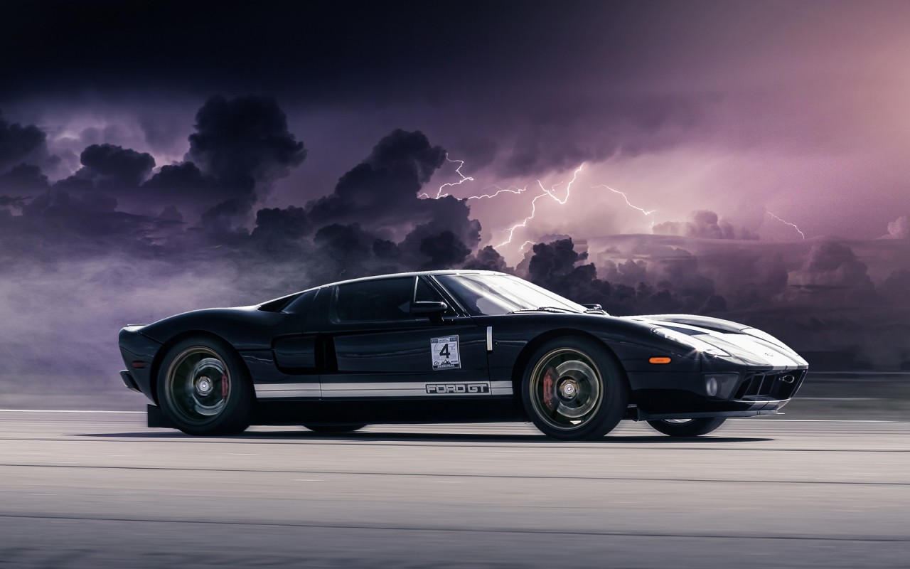 Ford GT Black Clouds Lightning Wallpaper - 1280x800