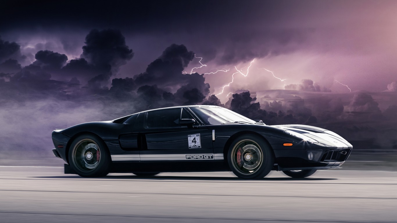 Ford GT Black Clouds Lightning Wallpaper - 1366x768