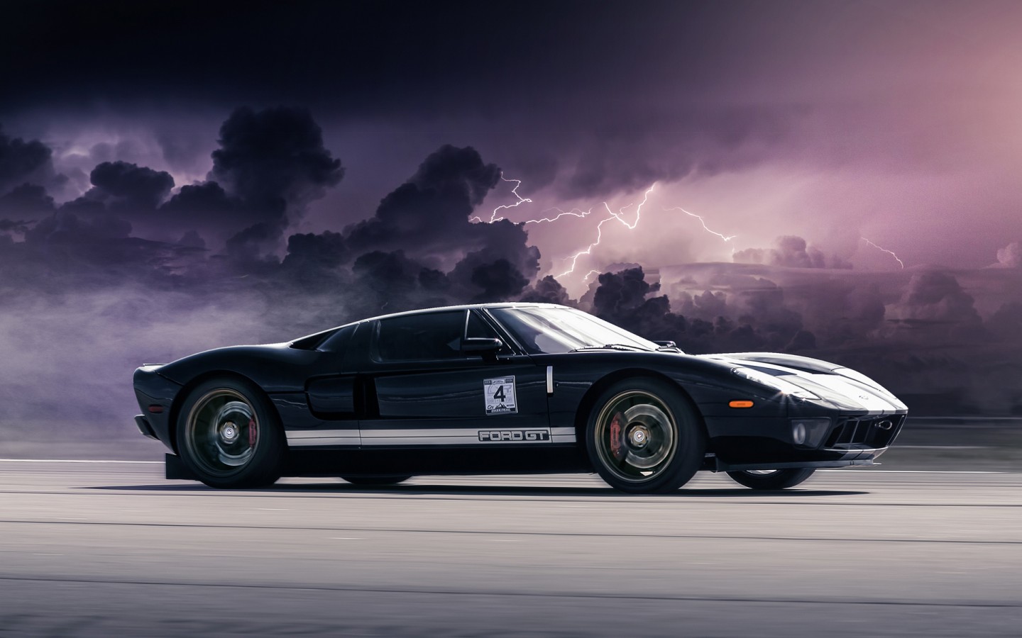 Ford GT Black Clouds Lightning Wallpaper - 1440x900