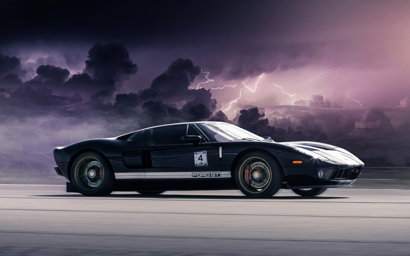 Ford GT Black Clouds Lightning Wallpaper - 1680x1050